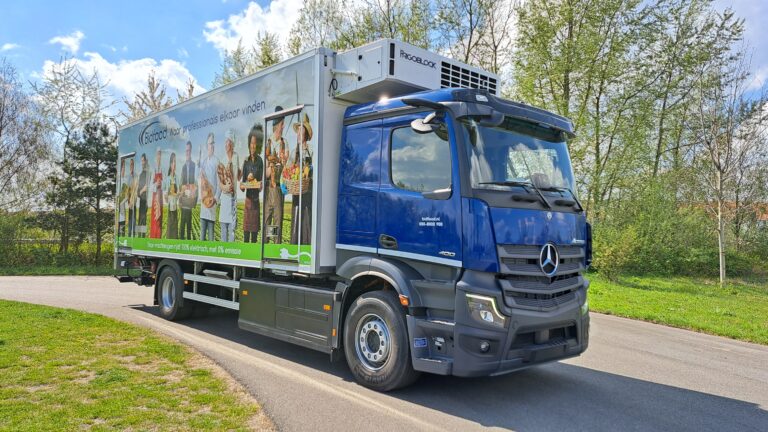 Voor horeca groothandel Bidfood realiseerden wij de opbouw van een Mercedes-Benz eActros tot een geconditioneerde chassis cabine. De geïsoleerde laadruimte is uitgerust met een Frigoblock koel- en vriesinstallatie. Boven de deuren werden luchtgordijnen gemonteerd. Ook werd een BÄR laadklep geïnstalleerd. De vrachtwagen is klaar voor het veilig vervoeren van verse en temperatuurgevoelige producten.